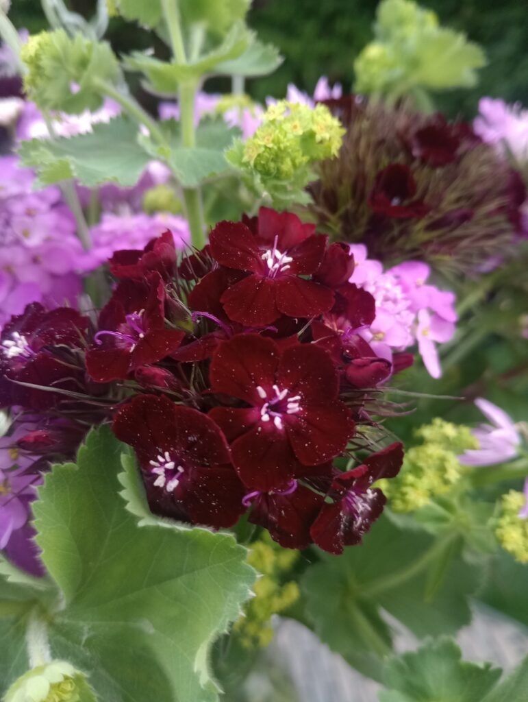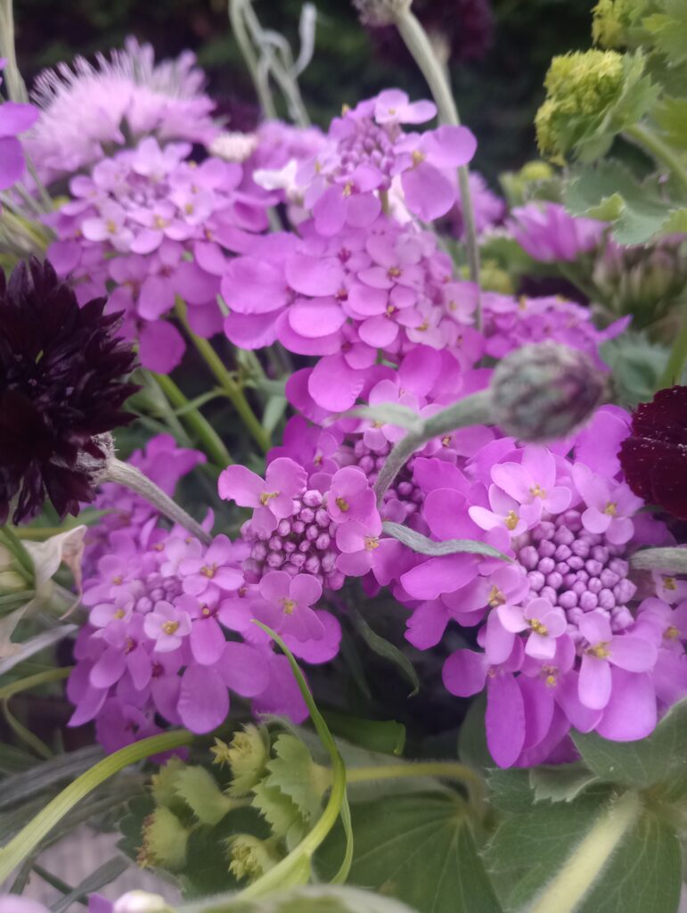 It was my first time growing Candytuft ‘Crown’ this year and I was really impressed with it. It was grown from an autumn sowing and came through the winter well. I grew it in a raised bed in my cutting garden with Orlaya grandiflora and what a lovely combination that made, both flowering at the same time. Here it is in combination with the dark flowers of Cornflower ‘Black Ball’ and Sweet William ‘Nigricans’, the pale pink Knautia ‘Melton Pastels’ and Allium roseum, and the vibrant green of Alchemilla mollis.