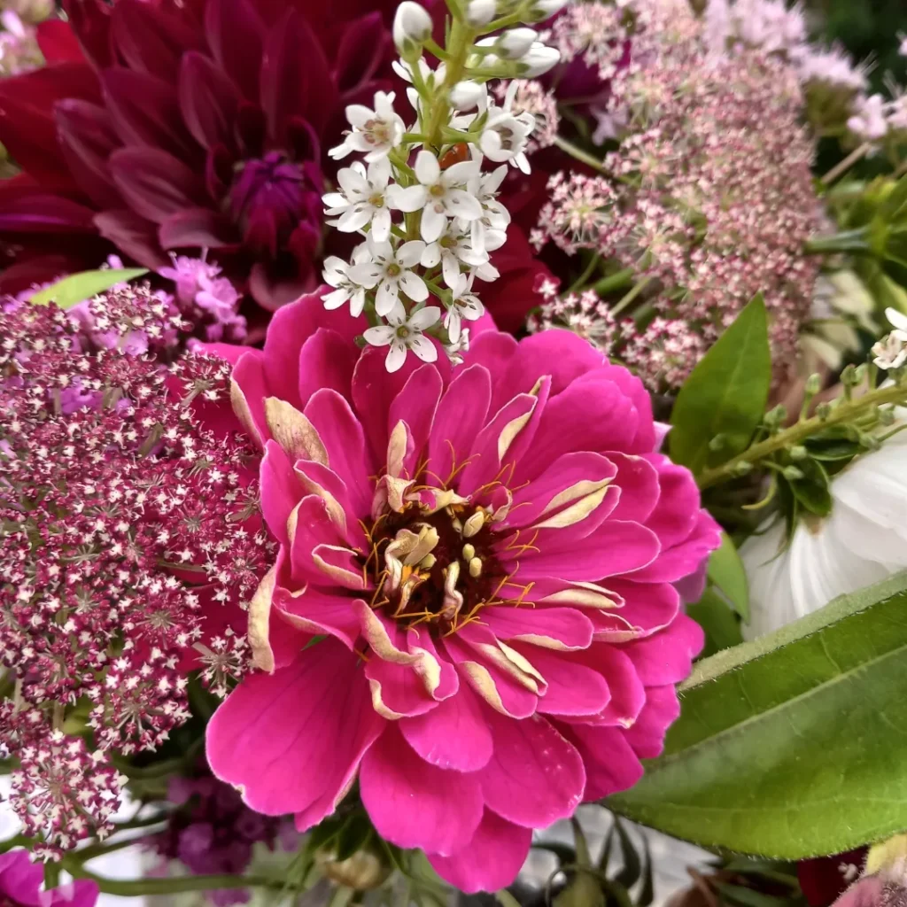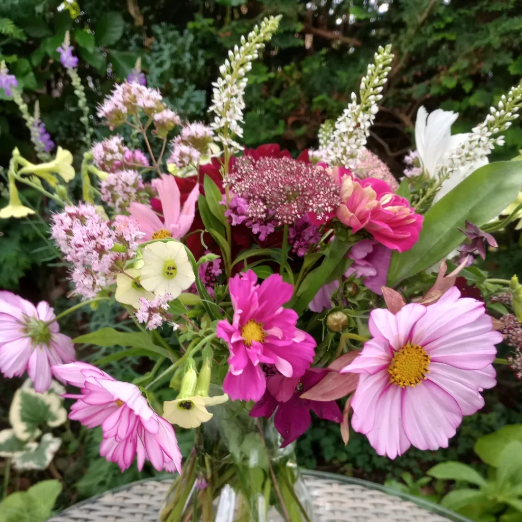 As you might expect being in the Higgledy garden seed list its great as a cut flower adding a beautiful frothyness to arrangements and as an airy filler. It has a flat flower head so a different flower shape to include in your displays. It is best cut just as the flower is almost fully open and doesn’t require any special conditioning. It will last about a week in a vase. Use it in a similar way as to how you might use Ammi majus and Ammi visnaga but it usually flowers later than those so good way to extend the seasons in your cutting patch. Here it is in the mix with Cosmos ‘Fizzy Rose’, Cosmos ‘Sensation’, Cosmos ‘Purity’, Zinnia ‘Mammoth’, Origanum and Lysimachia barystachys.