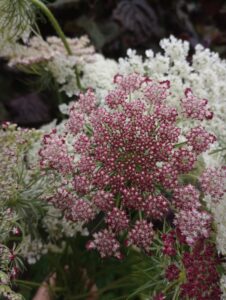 Thought it would be nice to highlight some of the unsung heroes of the Higgledy seed portfolio (ooh that sounds posh!) and so here’s a short blog post looking in a bit more detail at a different variety each time. This week I’m looking at the delightful Daucus carota ‘Dara’. This is a new variety for us and I think its just lovely. Its an ornamental form of the species variety Daucus carota or wild carrot with delicate lacy flowers in various shades from white, to pale pink to dark pink almost red. Daucus carota is beautiful itself with gorgeous creamy white flowers.