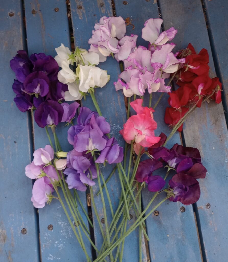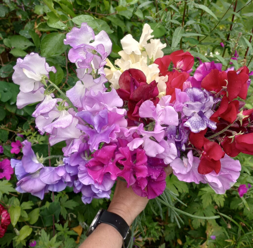 They do require some work to grow and that can put people off but its the pottering type of gardening which I love! Sowing of the seeds, planting out in spring, a bit of tying in when they start growing up the support, watering and feeding and then the biggest job is keeping them deadheaded and where is the chore in that, that just means you keep picking them before they go to seed. You start off picking the odd bloom but there comes a joyous moment when you have a big armful and can have multiple posies all over the house and give them out to your friends and family. Once in full flower I tend to do a big pick across the support once a week and that keeps them going. Its important that you do this as they will stop flowering if you don’t.