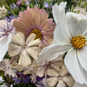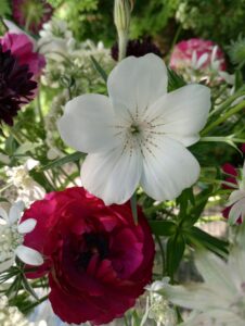 Two great fillers to sow right now are also Ammi visnaga and Ammi majus. I missed out sowing Ammi majus in the autumn so I sowed this a few weeks back and it has germinated now so I need to get it pricked out and potted on. Ammi visnaga I sowed in the autumn and they are growing nicely. But it’s easy to sow now too. Echium ‘Blue Bedder’ and Borage are two beautiful blues that are really worth growing in your garden if you want to support your bees even if you are not bothered about cutting them. Corncockle is another one where I have some plants from an autumn sowing but I also recently sowed the new Corncockle ‘Queen’ and have had fantastic germination on those. But they can still be sown now. They flower at a similar time to the Cornflowers and make great buddies in an arrangement. Lavatera ‘Mont Blanc’ which was new to me last year and I really loved it, again it was long flowering. I’m looking forward to growing that again.