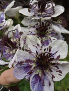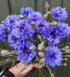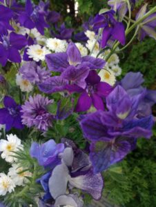 Salvia ‘Oxford Blue’ and Salvia viridis with its mixed colours are next on the list. Not everyone grows this but I have to say it’s one of the most productive plants in my cutting patch and it’s a must for me. It’s so long flowering, it will flower from June/July and keep going till the first frosts if you keep picking it.