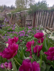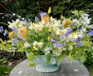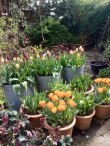 Its all go in the garden now, its unstoppable and April is certainly changeable in its weather, we have had heavy showers and hail occasionally, beautiful sunshine and warm days, then sharp frosts and strong winds and storms. It keeps us on our toes. The fleece is out many a night at the moment giving a bit of extra protection to my half hardy annual seedlings in the greenhouse. To be honest I’m glad its stayed fairly cool as it means the bulbs have lasted well this year. The tulips are still looking glorious and the later Narcissus are scenting the area around my potting shed beautifully. I keep bringing in a bunch for the house too and they are by my desk that I do Higgledy orders on and they are just beautiful.