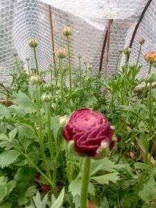 The Ranunculus beds are bursting with flower stems now, I’m really happy with these plants especially as most are grown from claws that I saved from last year. In fact those ones are bigger than the plants grown from newly bought in claws. I can’t wait to start picking from these.