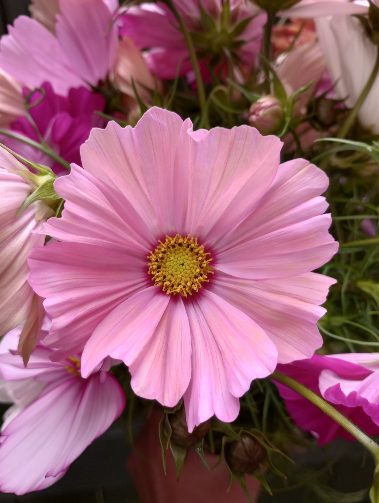 Cosmos ‘Sensation’ is the old-school cosmos that never lets you down. Tall, airy and endlessly obliging, it sends up a forest of ferny foliage topped with large, daisy-like flowers in soft pinks, whites and rose tones. It has that effortless, cottage-garden looseness — flowers bobbing on long stems, catching the light, and somehow looking better the more casually you grow it.